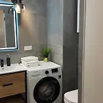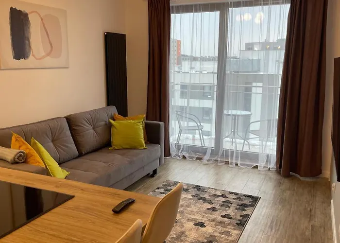 이 2-Room In New House, Wola 아파트는 바르샤바의 Wola 지역에 위치해 있으며 바르샤바 프레데리크 쇼팽 공항에서 15km 떨어져 있습니다. 이 1개의 베드룸 아파트는 1개의 욕실과 부엌을 갖추고 있습니다.